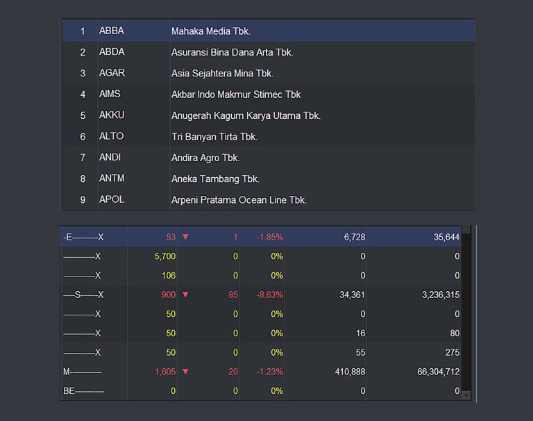 Anda dapat memilih jenis special Notation (All/ Code) dengan mengklik button ⚪ lalu memilih jenis saham dengan Klik button 🔍 dan melihat pencarian sebelumnya dengan klik button 🔽