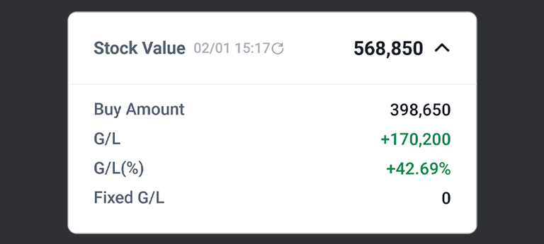 Menampilkan ringkasan nilai portofolio saham secara keseluruhan.