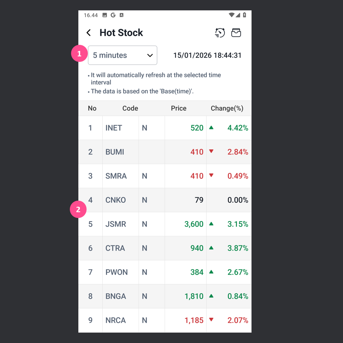 Hot Stock adalah fitur yang menampilkan saham-saham yang sedang paling aktif bergerak dalam periode waktu tertentu.