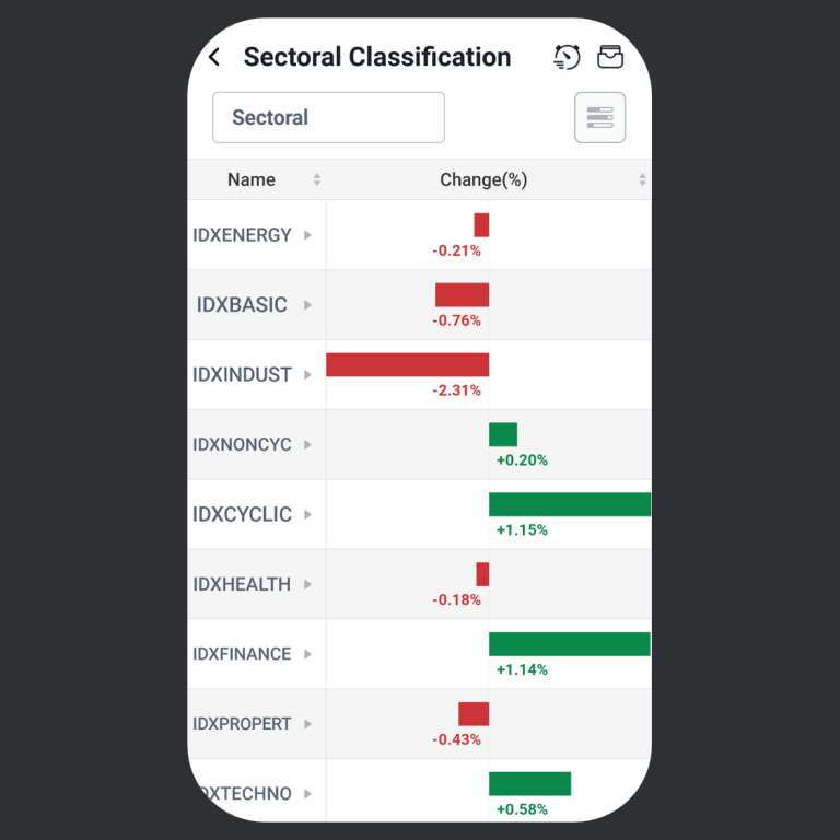 Fitur ini membantu pengguna melihat sektor mana yang sedang naik atau turun, sehingga lebih mudah menentukan sektor yang sedang menarik untuk diperhatikan