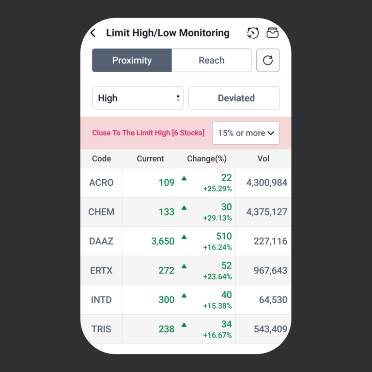 Limit High/Low Monitoring membantu pengguna memantau saham yang sudah mendekati atau mencapai batas kenaikan (Limit High) maupun penurunan (Limit Low).