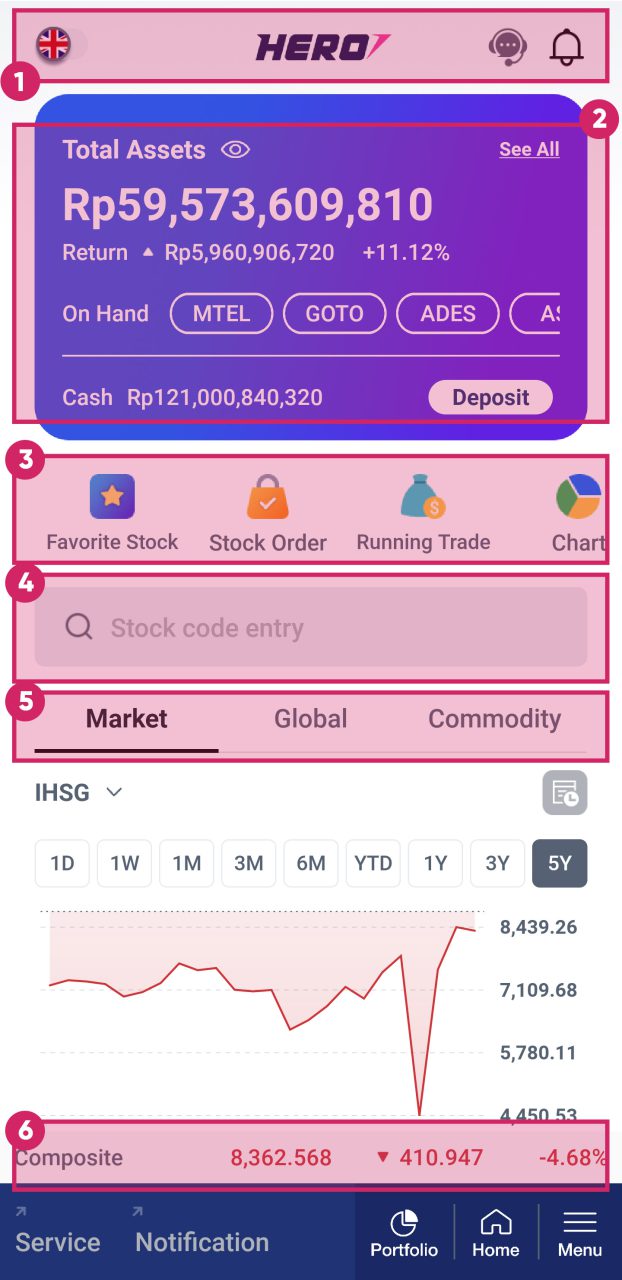 Ada banyak informasi yang dapat di akses secara gratis (tanpa login) pada layar “HOME” HERO