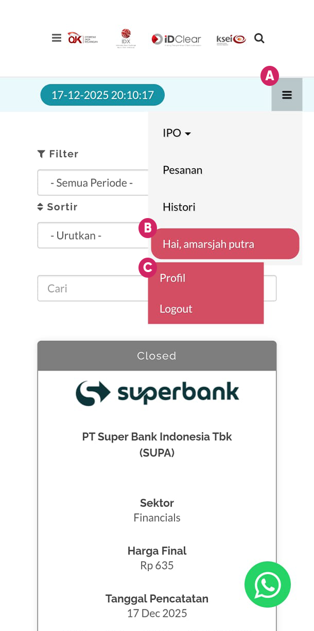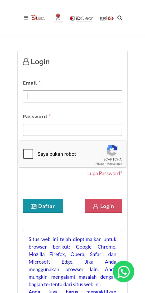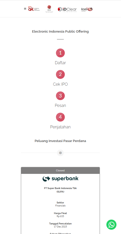 Seluruh proses pemesanan saham IPO tidak dilakukan di dalam aplikasi, melainkan melalui website e-ipo.co.id yang akan dibuka menggunakan browser yang terdapat pada akun anda.