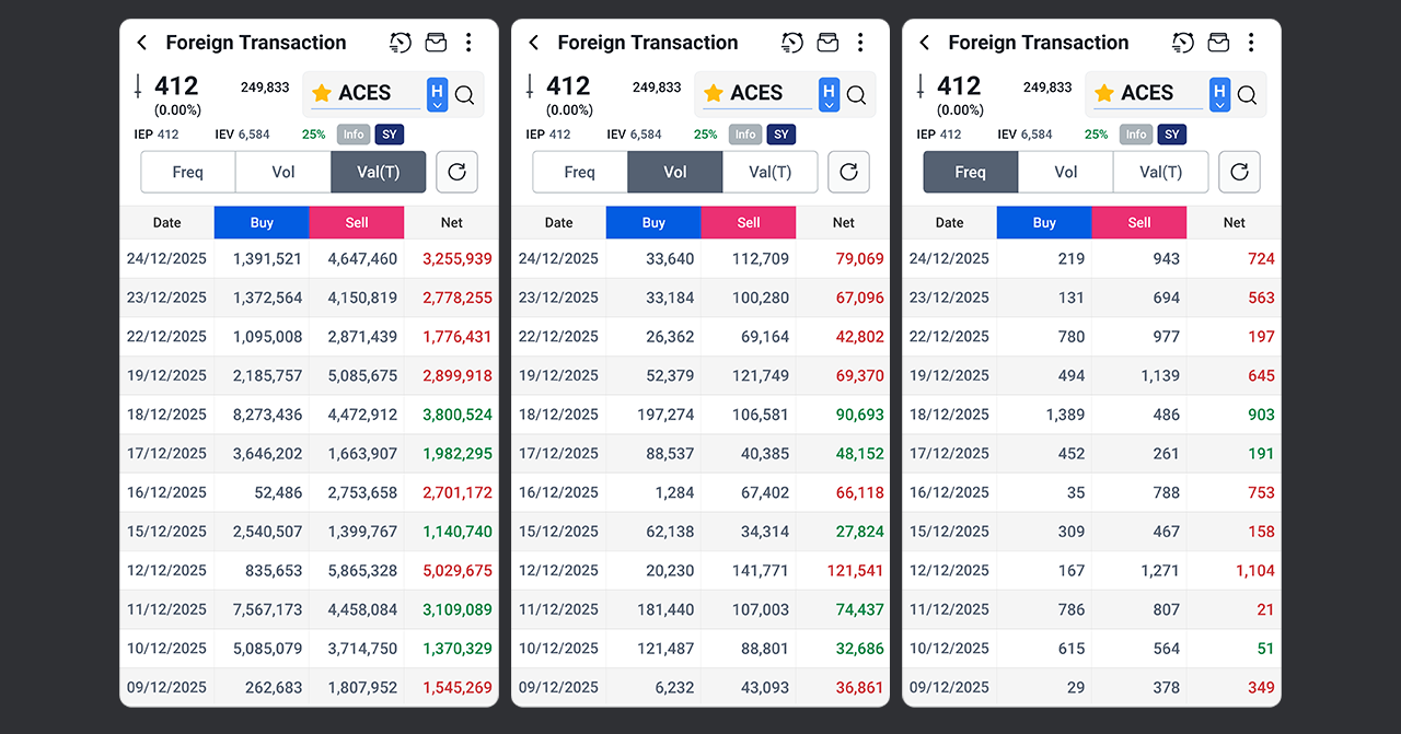 Foreign Transaction adalah halaman yang menampilkan aktivitas transaksi investor asing pada suatu saham.