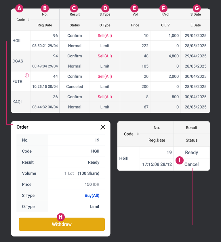 - Nasabah hanya dapat melakukan Withdraw untuk membatalkan order,
