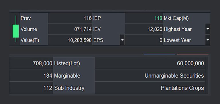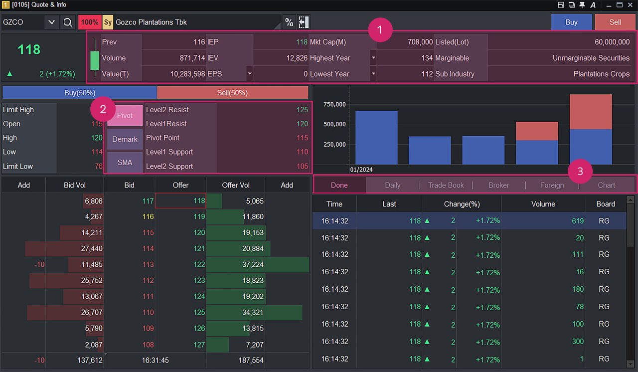 Menu yang dapat menampilkan detail penting secara teknikal dari suatu saham atau emiten.