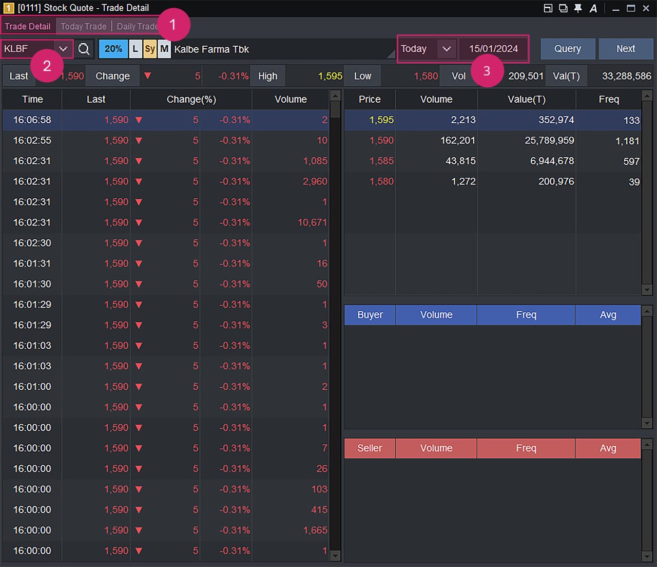 Screen ini berguna untuk melihat kondisi market baik secara real time, atau per harian