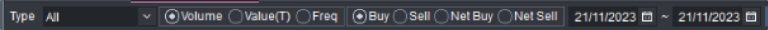 Anda dapat memilih Jenis Saham, Nilai Transaksi (Vol, Value, Freq), transaksi jual/beli serta net jual/net beli , dan memilih periode transaksi yang anda butuhkan