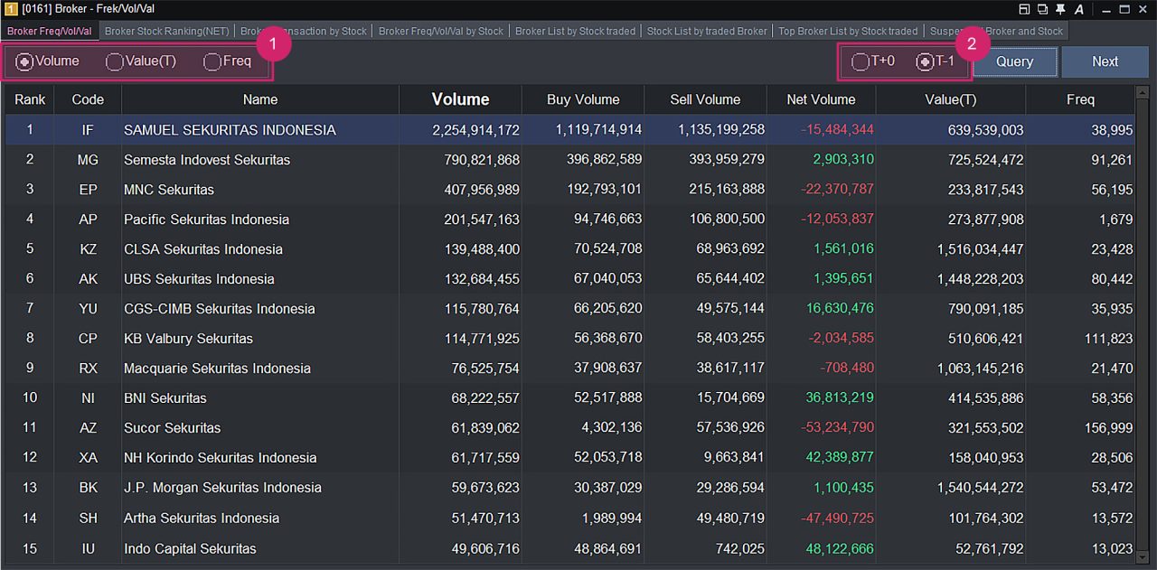 Anda dapat memilih Jenis nilai transaksi Broker dengan mengklik button ⚪